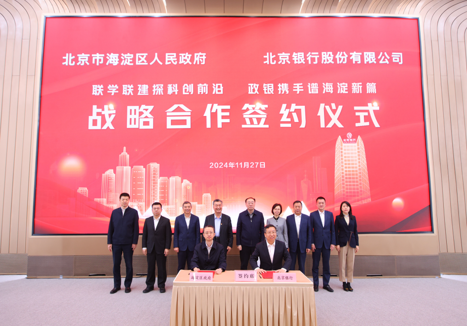 双方签署《海淀区人民政府北京银行股份有限公司战略合作协议》。根据协议,双方将在科技金融创新、产业发展、民生保障等方面深化合作。