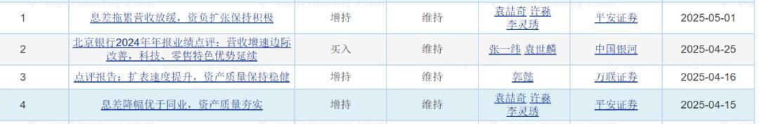 资本市场的反应是最敏锐的。2025年第一个交易日开盘至7月18日收盘,北京银行的股价上涨了18%,最新市值1450亿元。同时进入2025年至今,有平安证券、万联证券、中国银河以及平安证券四家机构对北京银行进行评价,其中三家增持,一家买入。