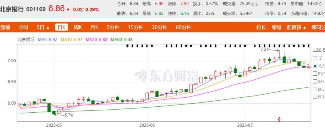 截至2025年一季度,总资产达4.47万亿元(较年初增长5.87%),存款、贷款规模同步增长。品牌价值突破1166亿元,连续11年跻身全球银行百强,市场认可度高。去年该行A股表现超出市场预期,2024年全年累计涨幅达43.69%。继去年总市值突破1000亿大关之后,2025年7月10日,北京银行盘中股价再创历史新高,总市值一度达到1530亿元。从2024年初至市值新高,北京银行总市值累计增长超728亿元。进入2025年,北京银行股价表现稳定,年内股价涨幅超过18%。