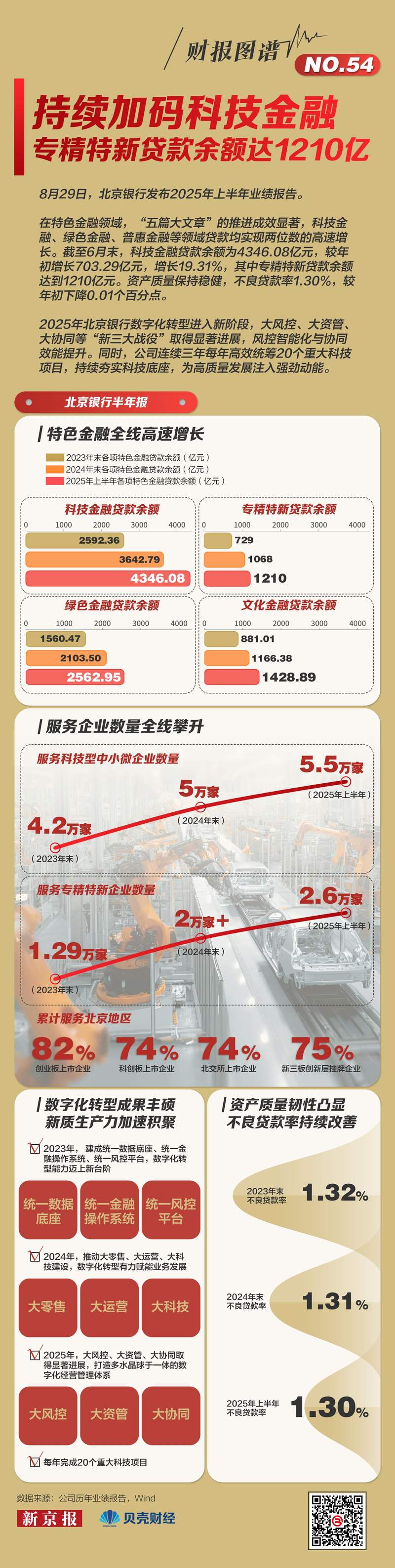 截至6月末,北京银行已服务5.5万家科技型中小微企业,2.6万家专精特新企业。