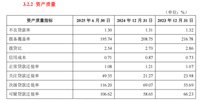 不良类贷款迁徙率攀升的同时,该行正常类贷款迁徙率却呈现相反走势——上半年该指标为1.08,较2024年末的1.21出现明显下降。正常类贷款作为银行资产池中占比最高、质量最优的部分,其迁徙率下降意味着资产质量的“基本盘”正在趋于稳定,新增不良的生成压力有所缓解。