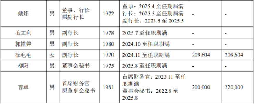 值得一提的是,北京银行曾在介绍新聘任的上述3人时,明确表示均为“高级管理人员”,但2025年半年报中的“现任高级管理人员”中未出现首席风险官、首席信息官。