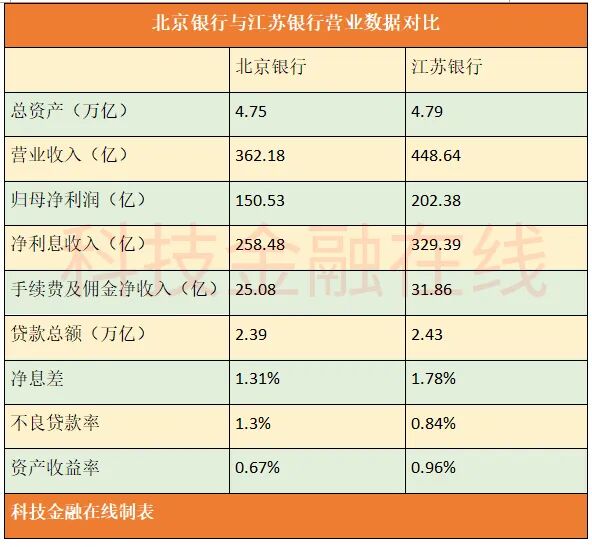 到2022年底,北京银行营收和净利润都被江苏银行反超。到2025年上半年,北京银行总资产规模也被江苏银行超过,彻底失去“城商行一哥”地位。