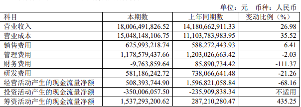 营业成本变动原因说明:主要是营业总收入增涨带动营业总成本同比增加。
