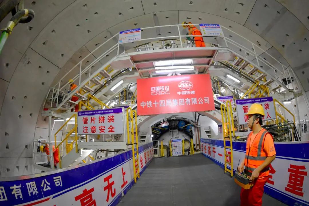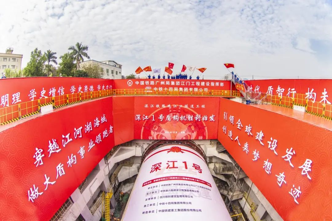 深江铁路珠江口隧道全长13.69公里,最大埋深106米,海水压力达10.6巴,为目前国内最大埋深、最高水压的海底隧道。中铁十四局负责的盾构穿越区间3590米,开挖直径13.42米,需在超高水压环境下进行海底换刀,盾构机首次在空间极其狭小的海底洞室内采用原位拆解+洞内回拖的方式进行接收。目前,“深江1号”盾构机已正式始发掘进。