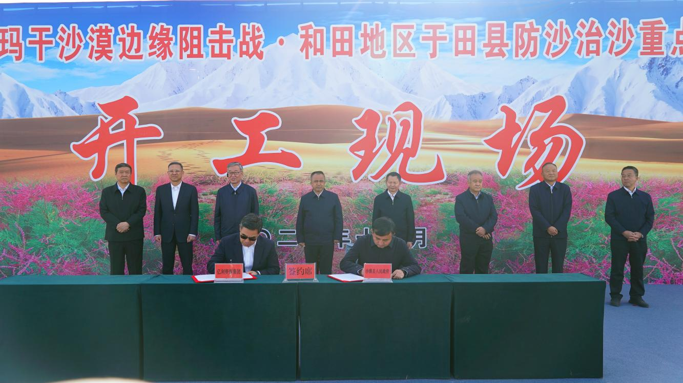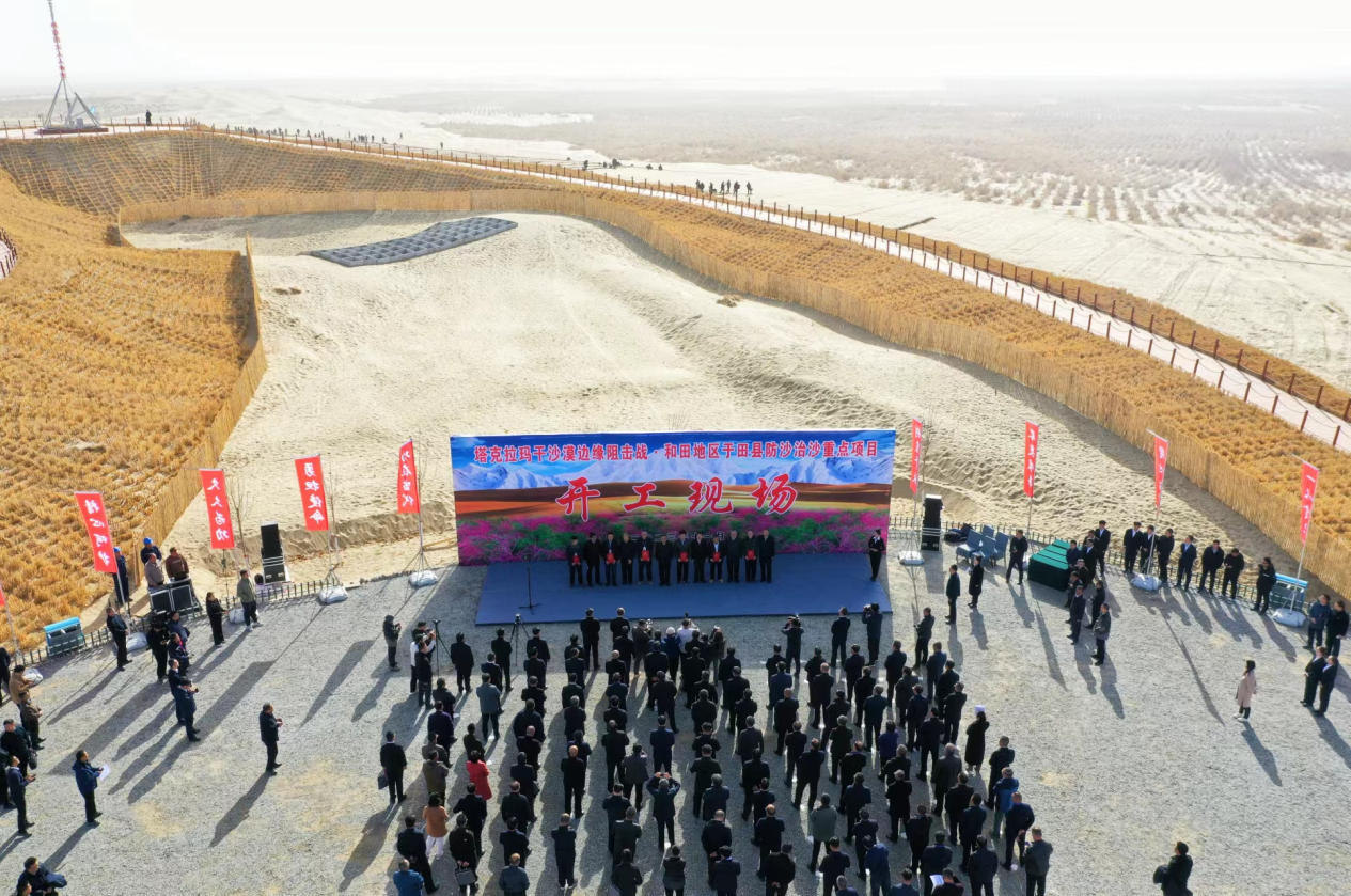 中国铁建、亿利资源集团在塔克拉玛干防沙治沙项目的签约启动,将助力塔克拉玛干沙漠边缘阻击战,推动新疆增水、增地、增绿、除盐、降碳、增汇,打造塔克拉玛干沙漠科技治沙、光伏发电、乡村振兴、沙产业发展、保护塔里木河流域生态的亮丽风景线。