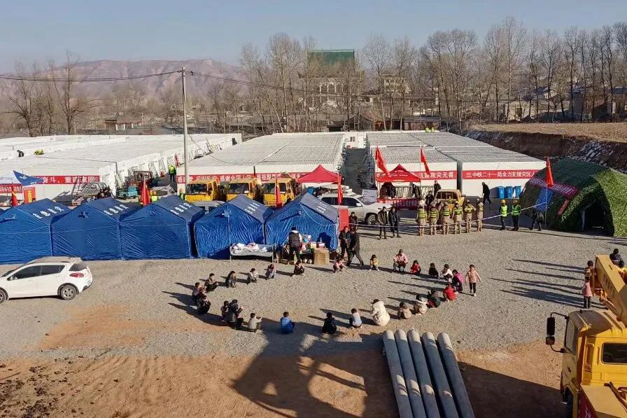 20日中午12时,大河家镇梅坡村党群服务中心安置点率先完成搭建任务,当日18时陆续交付梅坡村受灾群众使用。