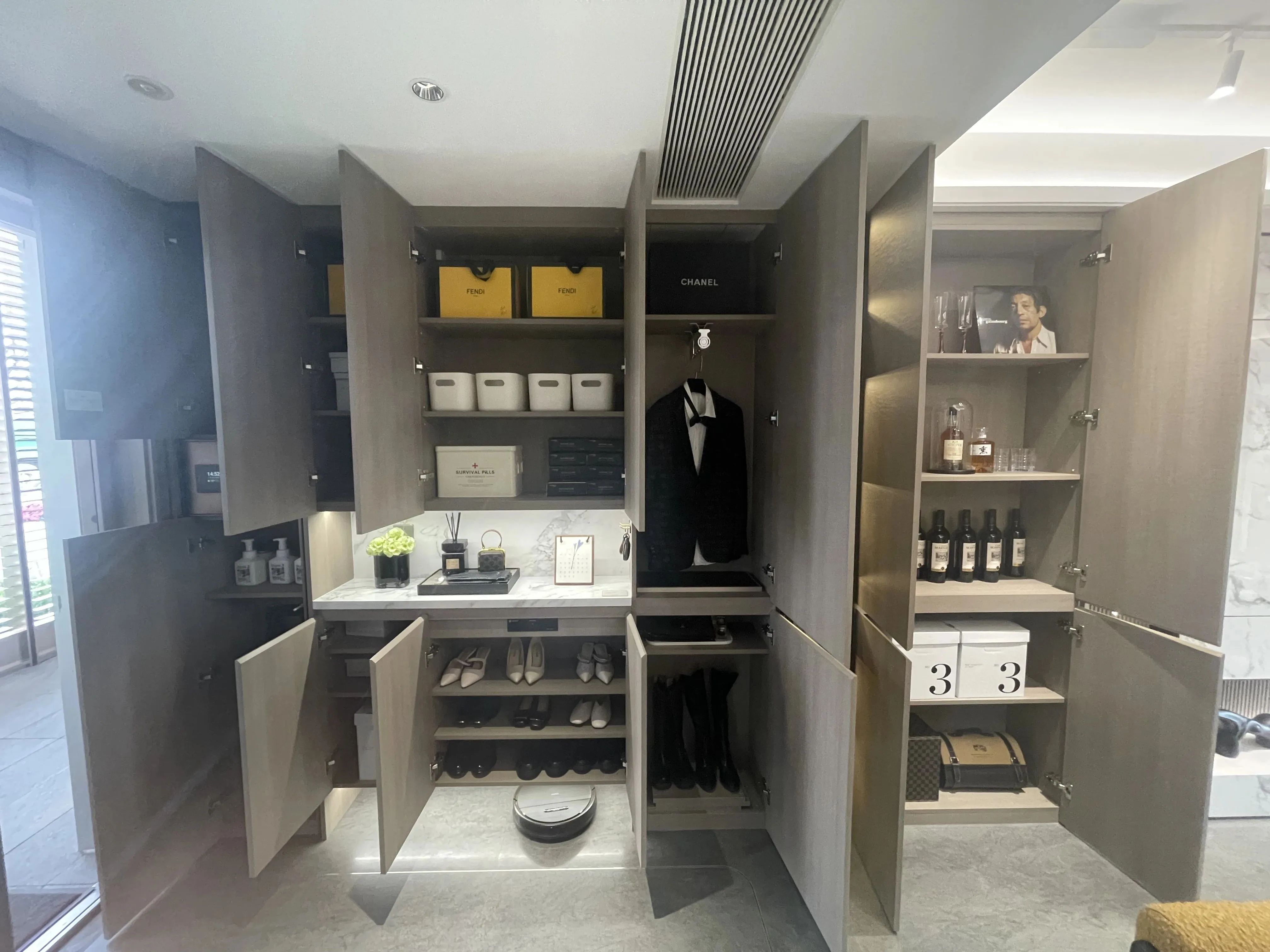 如“灭菌精灵”鞋柜、自带抽拉衣杆的挂衣区、预留的扫地机器人位置,都体现了中国铁建对产品细节的追求。