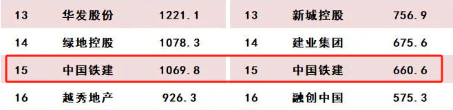目前看中国铁建“二次创业”成果斐然,2023年销售额1069亿排名全国前15,在上海更是劲销225亿排名前7。