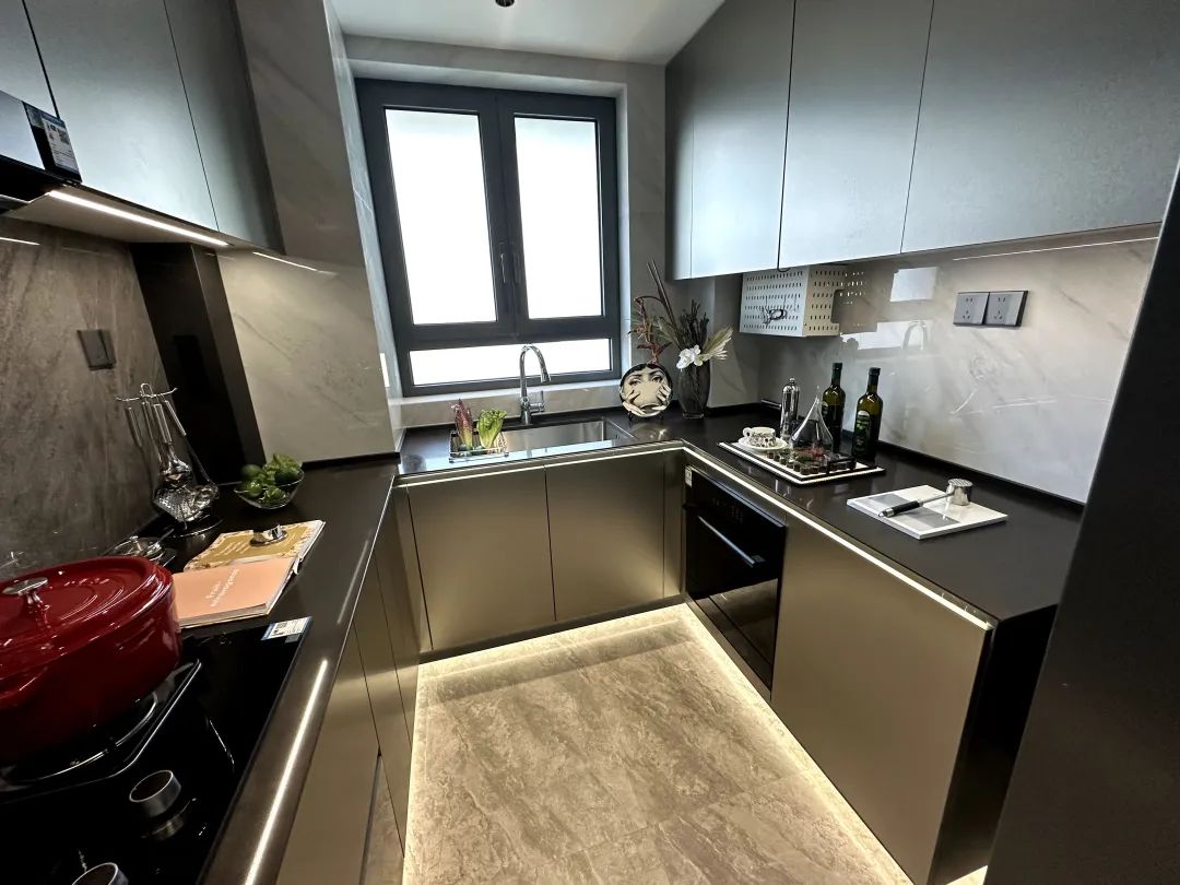 细节方面,无论是壁挂马桶,还是审美在线的金属配色厨房,都透露出对细节的考究。