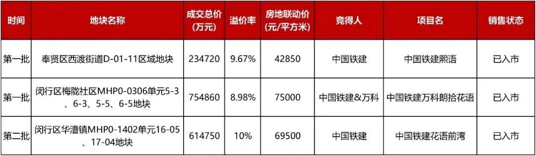 2023年,中国铁建斥资160亿在上海斩获3幅地块,中国铁建熙语、中国铁建万科朗拾花语、中国铁建花语前湾均已入市。
