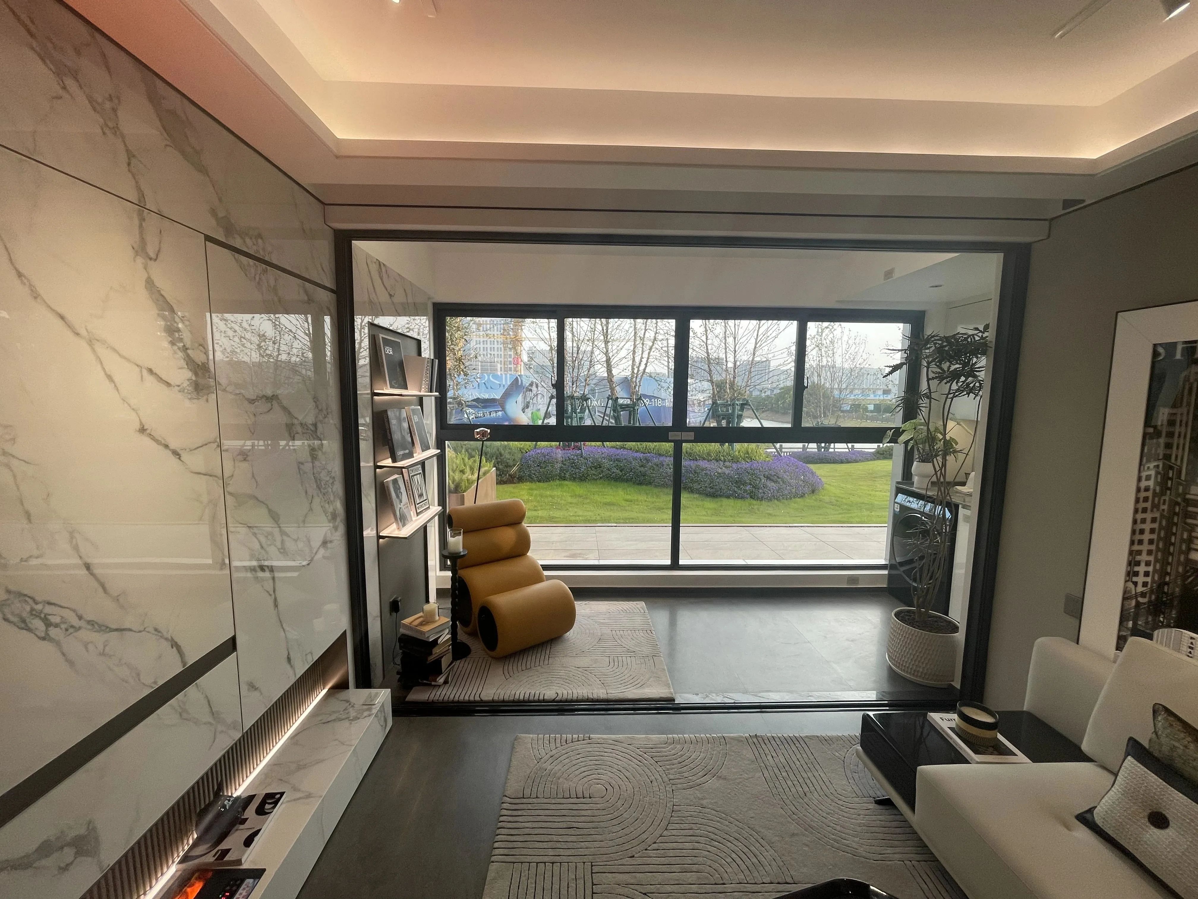 目前通廊已经实景呈现,让客户可以现场感受未来的归家动线,配合绿化景观非常抓取客户眼球。