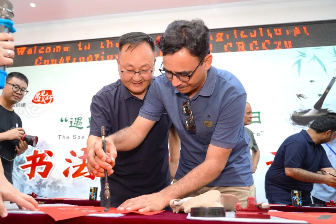 磨墨、提笔、挥毫,在中铁二十局伊川农业建设项目书法爱好者的带领下,大家还通过一撇一捺,学习感受了中国的书法写作。“我爱中国”“中巴友谊长存”……在项目员工的带领下,也纷纷用刚学习到的书法知识,一笔一划写下对中国的喜爱。