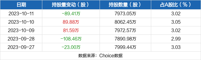 近五日持股量数据