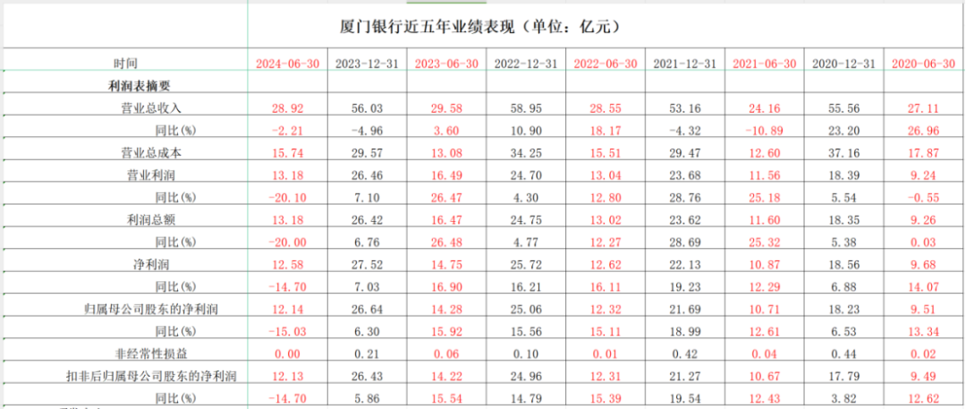 厦门银行上半年营收利润双双下滑,创上市后新纪录