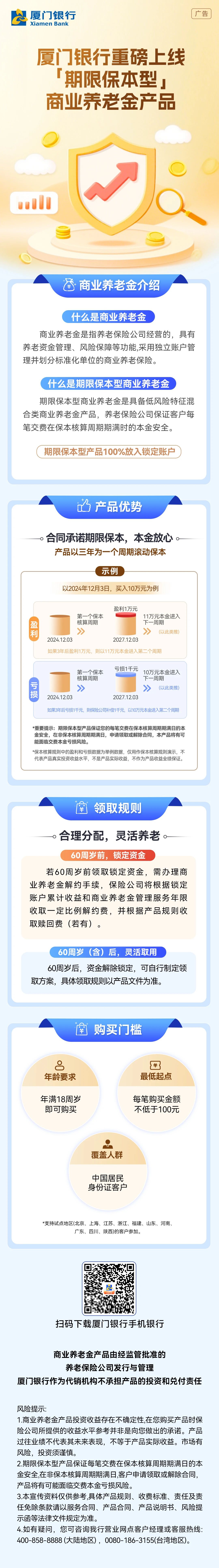 养老财富新选择 | 厦门银行重磅上线期限保本型商业养老金产品