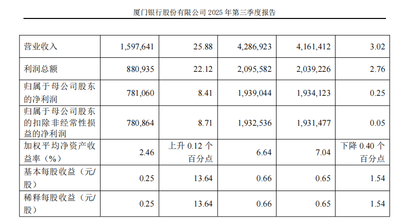 图片来源:厦门银行股份有限公司2025年第三季度报告