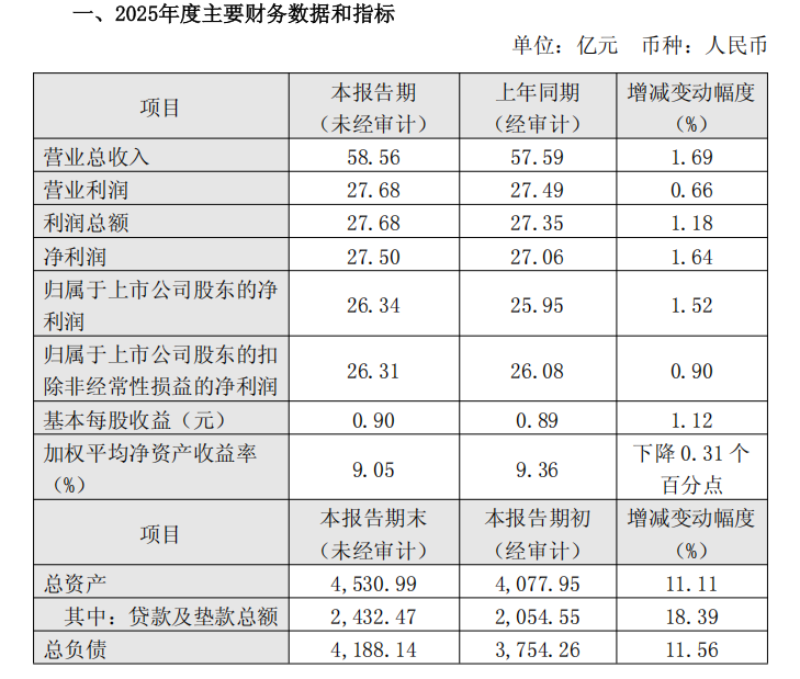 图片来源:厦门银行股份有限公司2025年度业绩快报公告