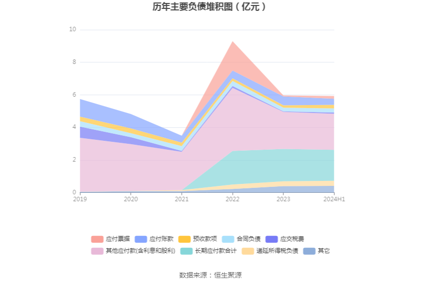 负债重大变化方面,截至2024年上半年末,公司应付账款较上年末减少33.17%,占公司总资产比重下降0.34个百分点;应付票据较上年末增加199.12%,占公司总资产比重上升0.21个百分点;预收款项较上年末增加60.21%,占公司总资产比重上升0.15个百分点;长期应付款合计较上年末减少4.00%,占公司总资产比重下降0.14个百分点。