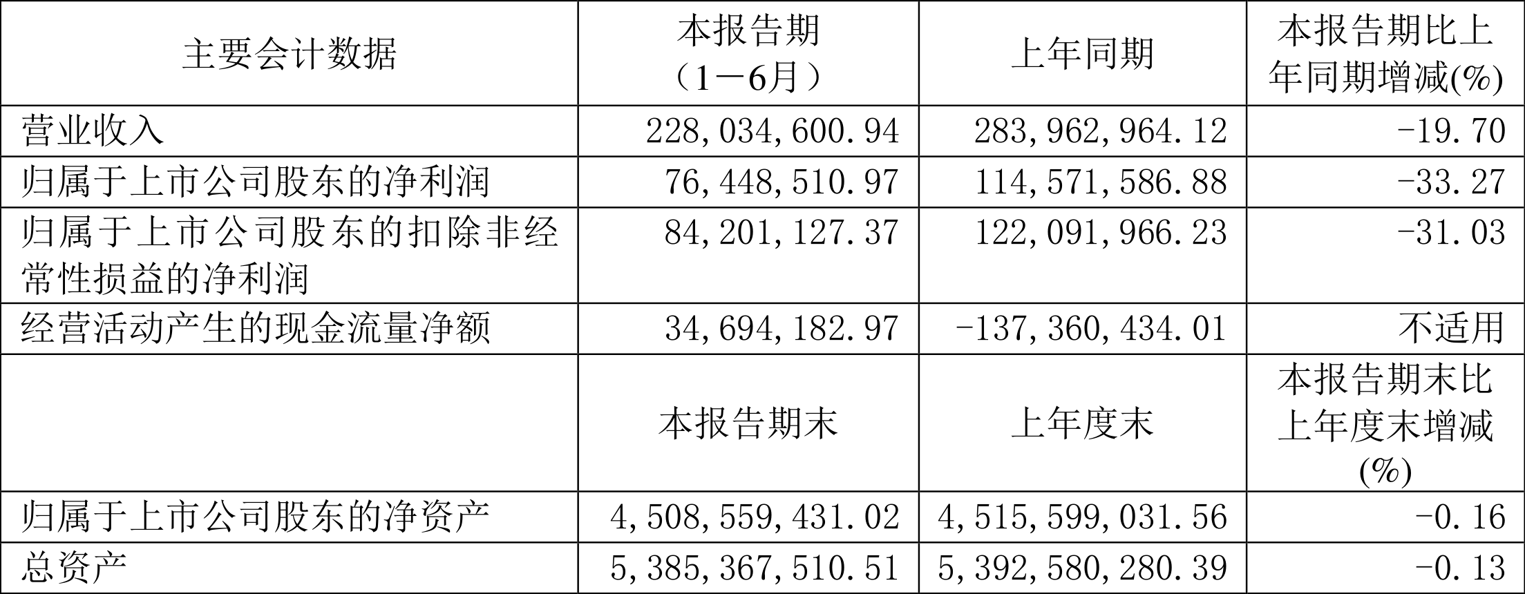 龙江交通(601188)8月28日披露2024年半年度报告。2024年上半年,公司实现营业收入2.28亿元,同比下降19.70%;归母净利润7644.85万元,同比下降33.27%;扣非净利润8420.11万元,同比下降31.03%;经营活动产生的现金流量净额为3469.42万元,上年同期为-1.37亿元;报告期内,龙江交通基本每股收益为0.058元,加权平均净资产收益率为1.68%。