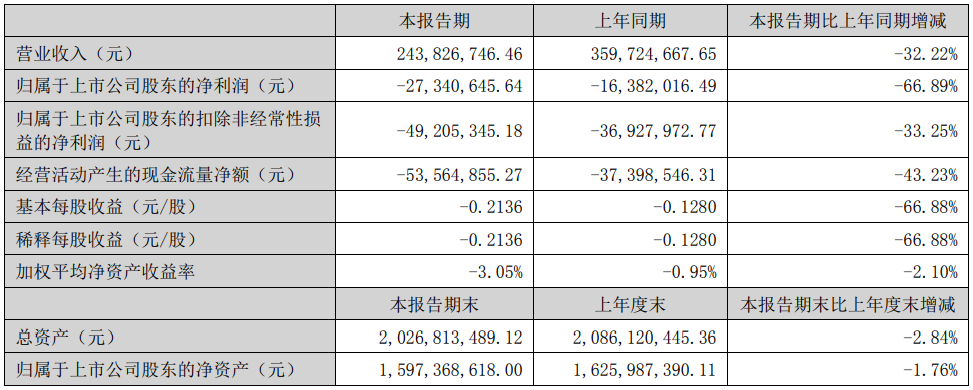 杰美特(300868.SZ)昨日晚间发布2023年半年度报告。今年上半年,公司实现营业收入2.44亿元,同比下降32.22%;归属于上市公司股东的净利润-2734.06万元,上年同期为-1638.20万元,亏损同比扩大66.89%;归属于上市公司股东的扣非净利润-4920.53万元,上年同期为-3692.80万元,亏损同比扩大33.25%;经营活动产生的现金流量净额-5356.49万元,上年同期为-3739.85万元。