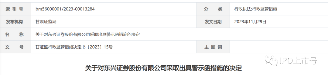 关于对东兴证券股份有限公司采取出具警示函措施的决定