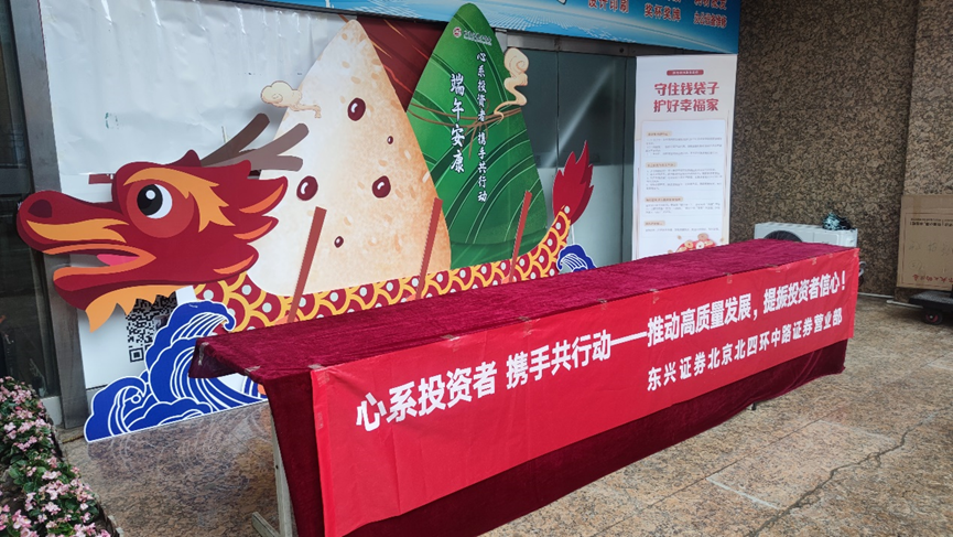 又是一年粽叶飘香时。为了切实提升广大投资者风险防范意识和金融素养,传承中华传统节日、感受端午节丰富的文化内涵,在端午节来临之际,东兴证券实体投教基地联合东兴证券北京北四环中路营业部,开展了以“心系投资者,携手共行动”为主题的投资者保护活动。