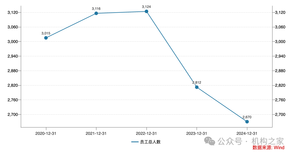 与此相对,投资业务人员由2020年末的124人持续增长至2024年末的146人,显示出公司在投资领域有倾斜性投入。这种结构性变动,整体映射出公司人力资源在经营压力背景下主动收缩战线、保留核心,尝试聚焦投入产出比更具确定性的领域。