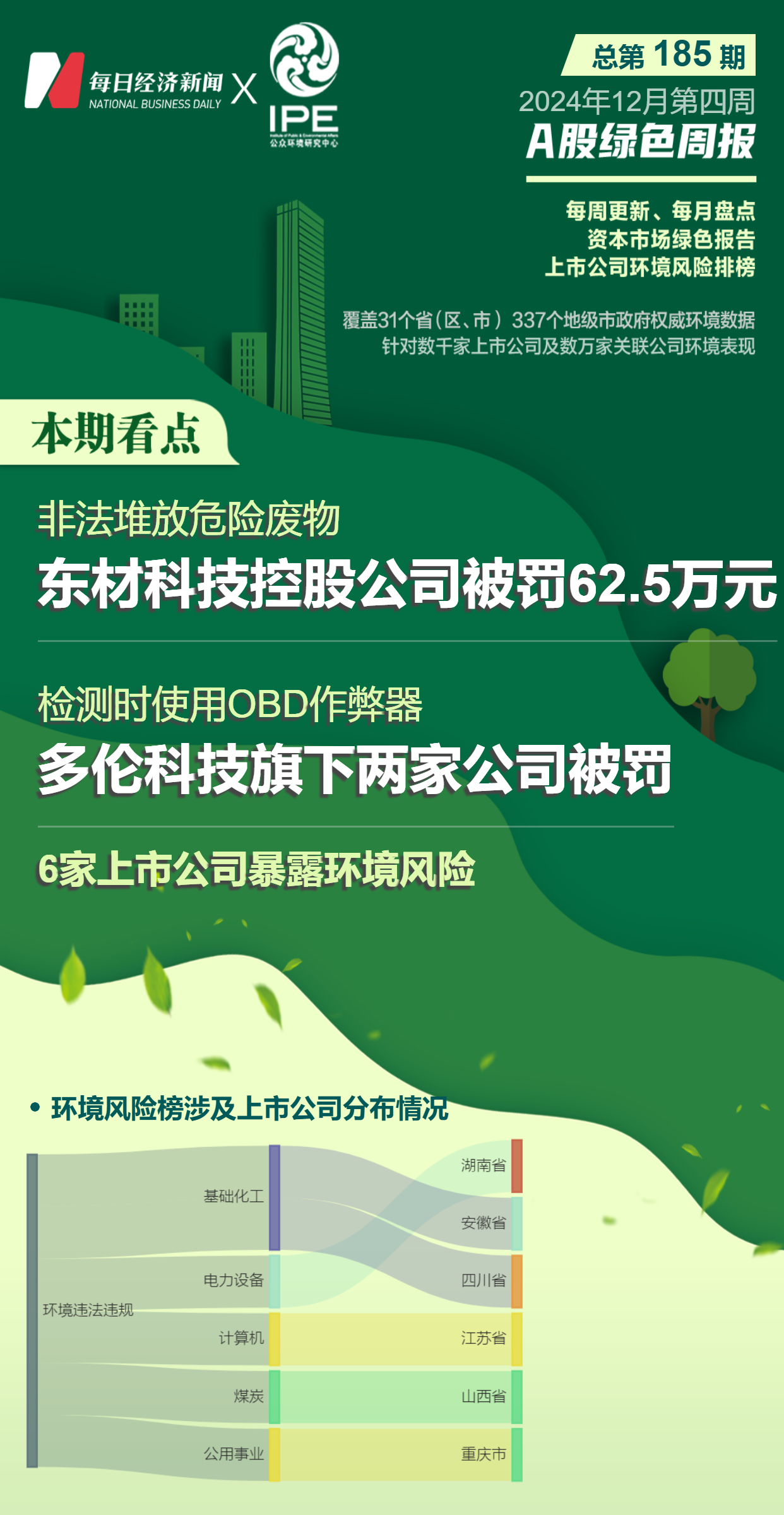 2024年12月第四周,哪些上市公司的环境保护与信披责任亮起了红灯?且看A股绿色周报第185期。