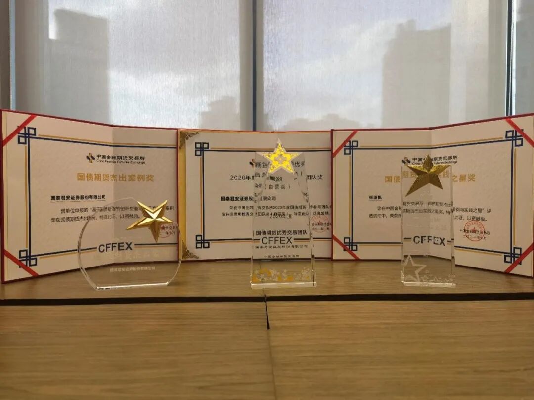 10月22日,中国金融期货交易所举办国债期货年度策略交流会,对2020年国债期货市场成绩突出的机构进行表彰。国泰君安凭借长期深耕国债期货市场的优异表现,获评“2020年度国债期货市场优秀交易团队奖(自营类)”,这也是公司自国债期货重启以来累计第六次获此项殊荣;同时凭借利用国债期货业务服务实体经济的杰出表现,获评“国债期货杰出案例奖”,此外,国泰君安固定收益外汇商品部张凌枫同志获得“实践之星”奖。