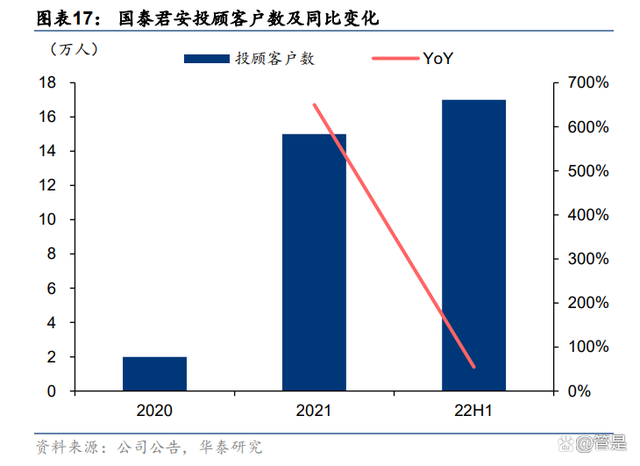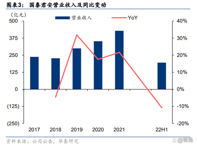 2)投资银行业务转型成效显著,公司把握常态化发行机遇,IPO 快速放量,规模增长亮眼,债券承销金额稳步提升;3)机构与交易业务受益于大投行生态的构建快速发展,机构客户股基交易份额显著提升,PB 业务规模迅速增长,投资方面坚持低风险、非方向性业务导向,积极推动客需转型,发展权益衍生品及固收代客交易业务;4)投资管理业务稳步发展,券商资管主动管理能力提升,公募产品布局起步顺利,同时公司连续受让华安基金股权,参股公募业务贡献显著增长;5)国泰君安国际业务波动下滑,主要系香港资本市场持续震荡及内地地产美元债波动影响投资收益,大幅拖累香港子公司业绩。