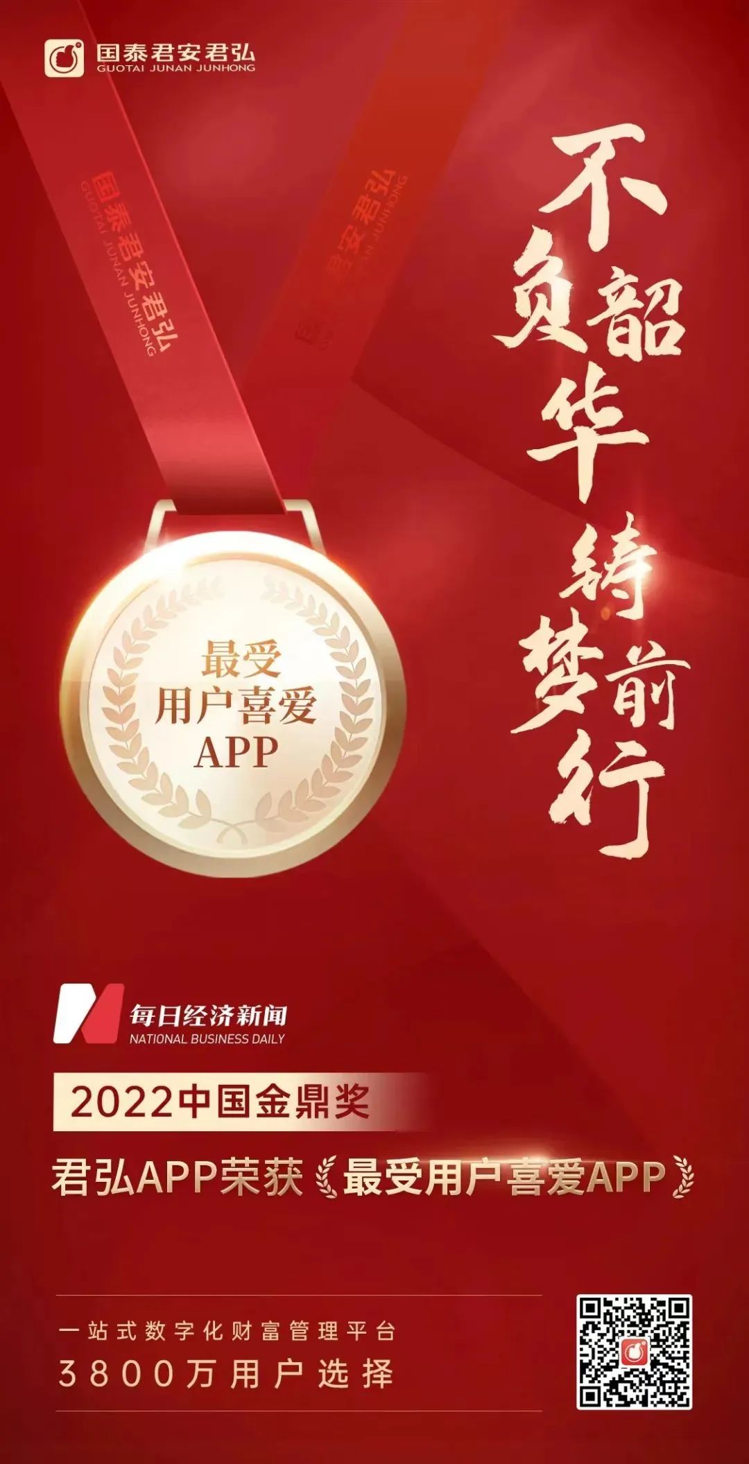 本次“金鼎奖”评选,国泰君安君弘APP凭借数字化、智能化、高质量的投资理财服务获得2022年度最受用户喜爱APP大奖,积极发挥 7*24 小时全天候数智化服务能力,持续为 3800 多万投资者提供及时有效的线上伴随服务,2022年APP月活逆势攀升至780万,客户满意度NPS指标持续提升至46.44,以信任积聚资产,用专业守护客户财富人生。