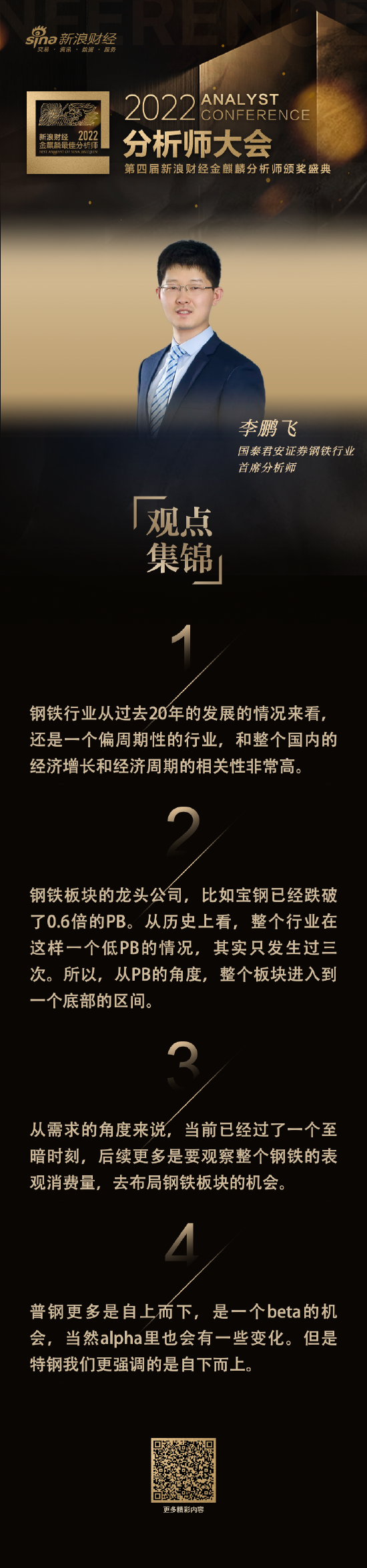 国泰君安证券钢铁行业首席分析师李鹏飞认为,特钢领域有非常多的公司值得关注和深入地进行挖掘和研究。