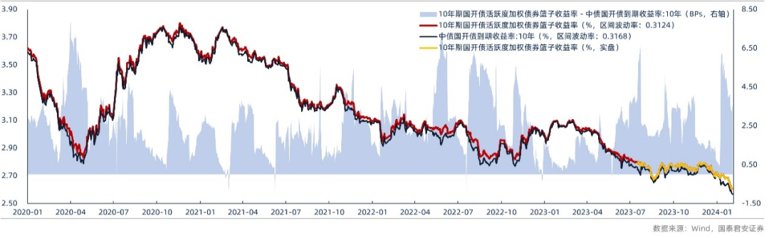 图1:国泰君安证券10年期国开债活跃度加权债券篮子收益率走势(2020-01至2024-02)