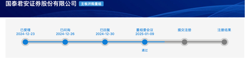 回顾国泰君安与海通证券的合并重组历程,9月5日,国泰君安、海通证券同步发布关于筹划重大资产重组的停牌公告;12月13日,两家公司召开股东大会审议通过合并重组交易方案等相关议案,仅用时3个月就完成了全部公司治理程序。12月23日,两家公司同步发布公告,宣布合并重组申请正式获得中国证监会及上交所受理。