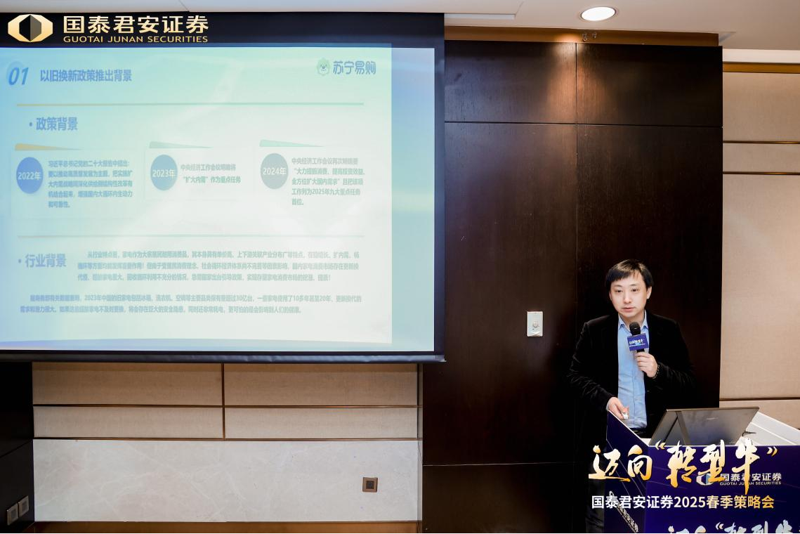 2月18日至19日,国泰君安聚焦“迈向‘转型牛’”主题,在沪举办春季策略会。作为“以旧换新促内需”代表企业,苏宁易购受邀分享以旧换新实施经验,并介绍了2025年业务创新策略和助力扩内需发展方向。