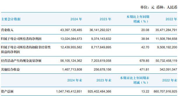 截至报告期末,国泰君安总资产首次突破万亿规模,达到1.05万亿元,较2023年末增长13.22%;基本每股收益为1.39元/股,同比增长41.84%。