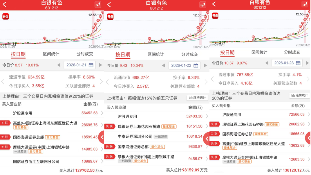 股价连续上涨期间,沪股通专用席位,以及一线游资、量化基金等多路资金,均多次出现在白银有色的龙虎榜中,可见市场资金形成连续接力态势,为其股价持续上攻提供了强劲推力。