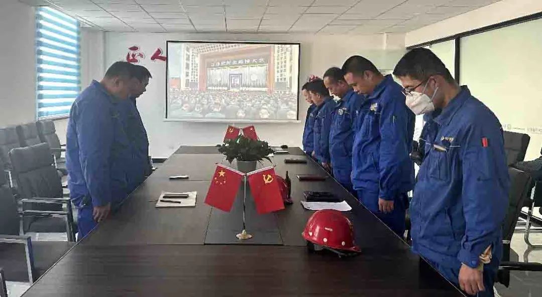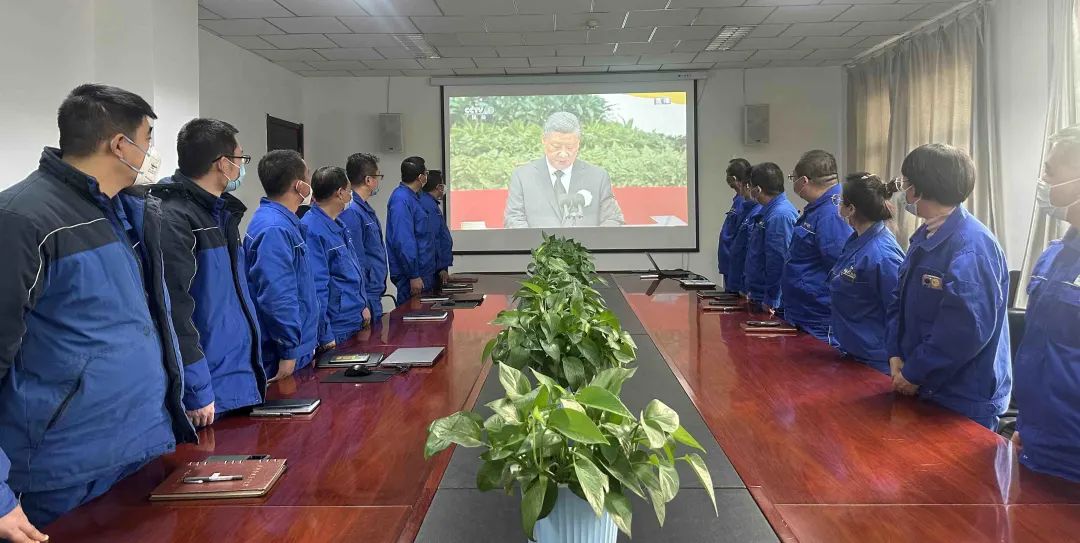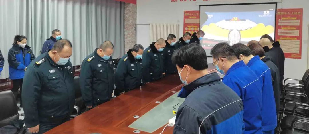 所有党员干部职工怀着无比沉痛的心情收听、收看大会直播,全程肃立,动作与直播会场同步。