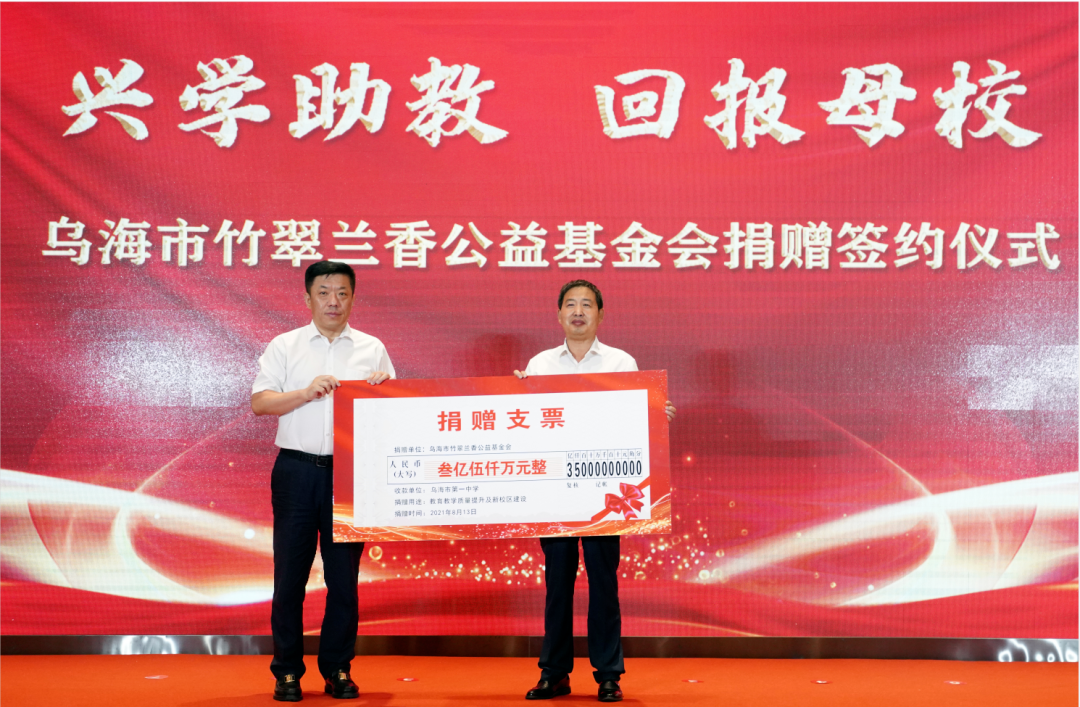2001年,君正集团董事局主席杜江涛先生在母校乌海市第一中学设立“竹翠兰香奖助学金”,用于资助贫困学生和奖励优秀学生;2009年,为乌海市海勃湾区第一小学独资捐赠建设了互联网教学中心;2020年,以竹翠兰香公益基金会的名义为其大学及研究生母校北京理工大学捐赠8亿元人民币,捐赠的全部财产和收益归属于北京理工大学所有;2021年,为家乡母校乌海市一中捐赠3.5亿元人民币。