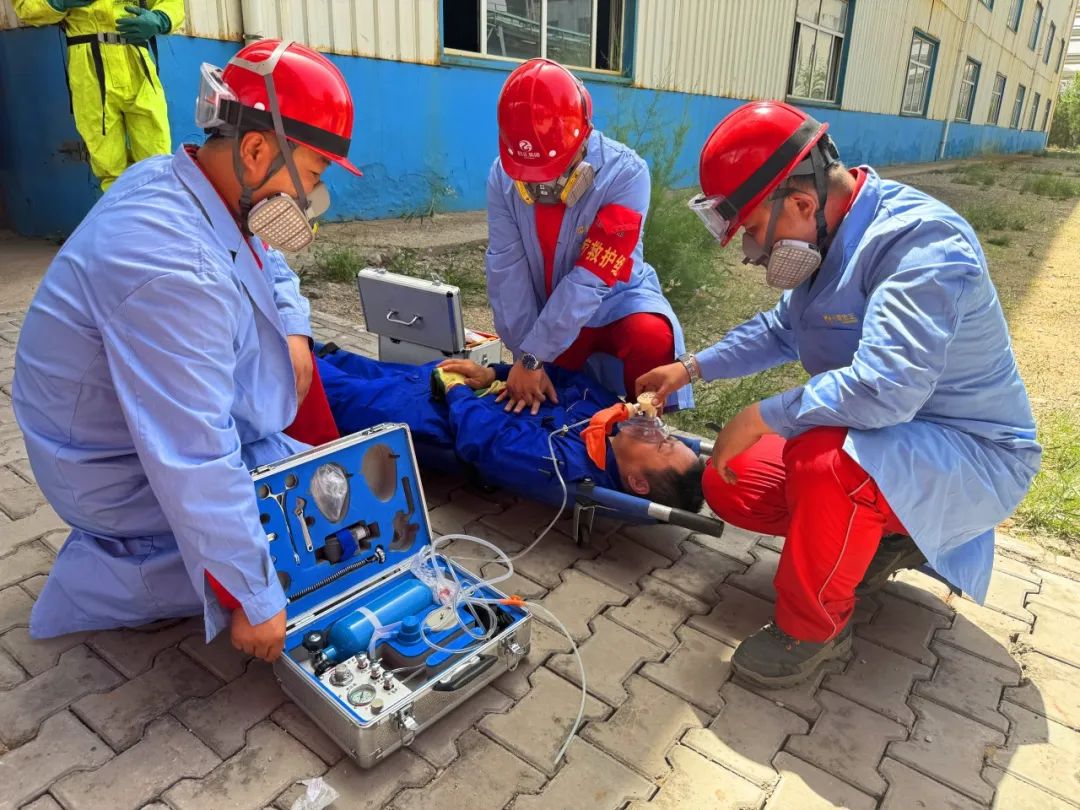 6月21日,乌达化工联合集团专职消防队开展了液氯储罐危险化学品一级重大危险源——液氯储槽平衡管氯气泄漏综合应急预案演练,演练模拟场景为巡检工因氯气中毒昏迷在储槽区域。