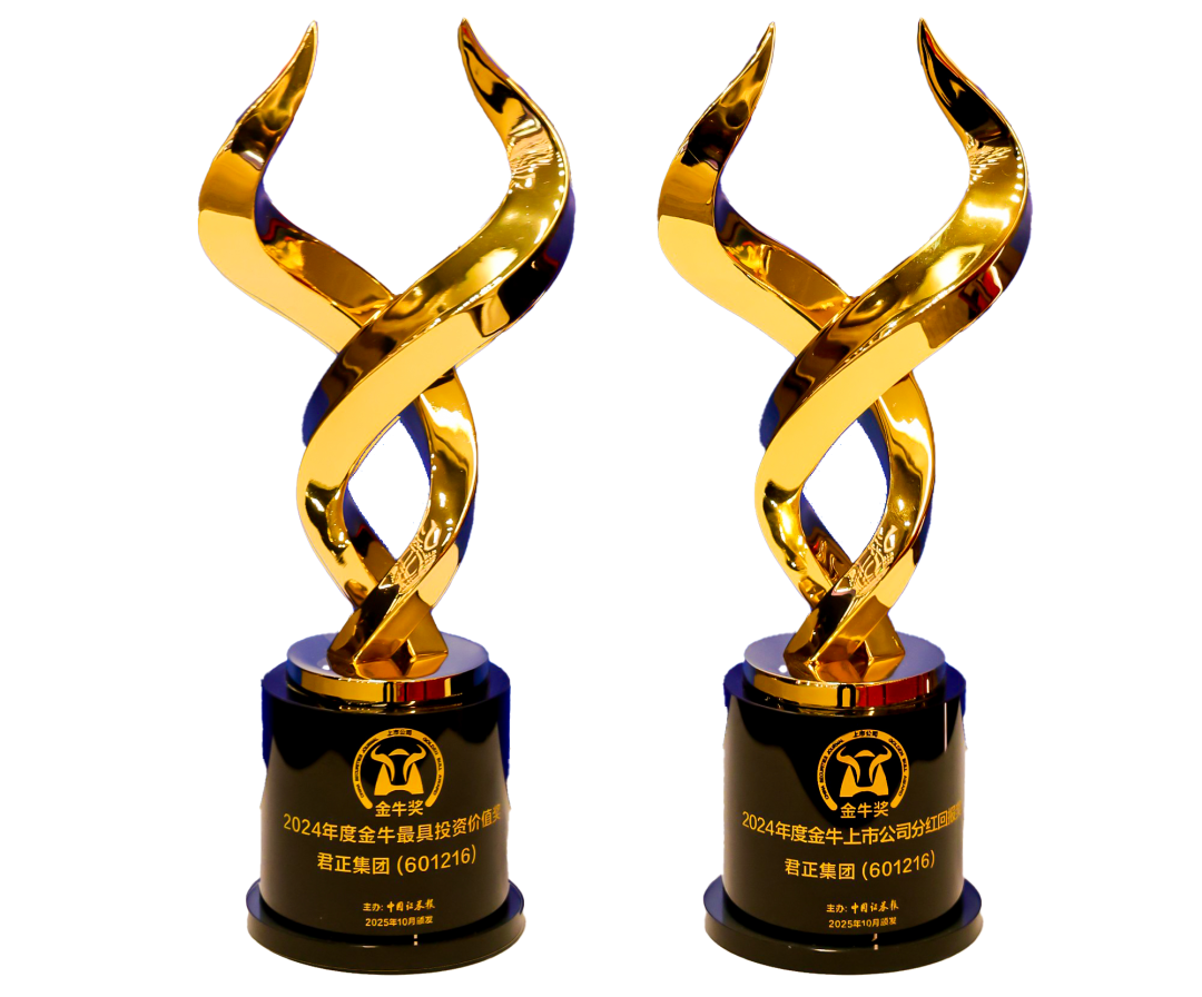 10月29日,由中国证券报与南通市人民政府联合主办的第二十七届上市公司“金牛奖”颁奖典礼在江苏南通隆重举行。君正集团凭借卓越的业绩表现和持续的股东回报能力,一举斩获“最具投资价值奖”与“上市公司分红回报奖”两项重量级荣誉。