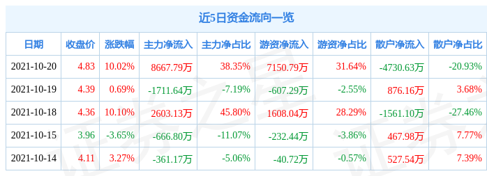 资金流向数据方面,当日主力资金净流入8667.79万元,游资资金净流入7150.79万元,散户资金净流出4730.63万元。近5日资金流向一览见下表:
