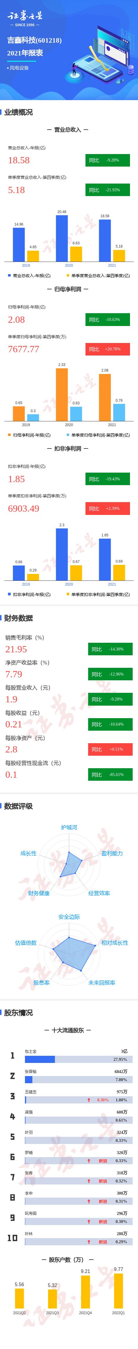 吉鑫科技2022一季报显示,公司主营收入3.35亿元,同比下降2.97%;归母净利润2538.93万元,同比下降3.37%;扣非净利润1939.12万元,同比下降24.17%;其中2022年第一季度,公司单季度主营收入3.35亿元,同比下降2.97%;单季度归母净利润2538.93万元,同比下降3.37%;单季度扣非净利润1939.12万元,同比下降24.17%;负债率30.35%,投资收益327.12万元,财务费用816.88万元,毛利率18.42%。
