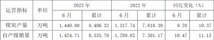 陕西煤业:上半年自产煤销量合计8335.7万吨,同比增11.13%