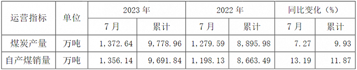 陕西煤业8月11日公告,7月煤炭产量1372.64万吨,同比增长7.27%;自产煤销量1356.14吨,同比增长13.19%。前7月累计煤炭产量9778.96万吨,同比增长9.93%;累计自产煤销量9691.84万吨,同比增长11.87%。