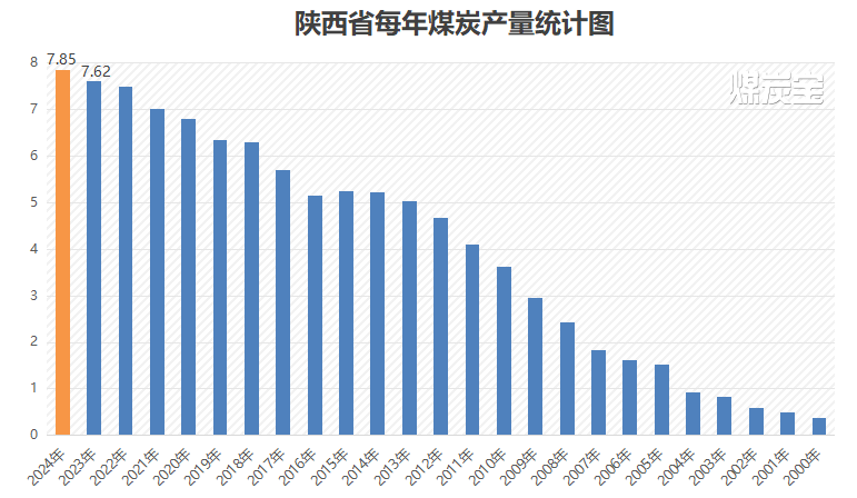 据煤炭宝统计,2023年陕西省煤炭产量约为7.62亿吨,其中陕西煤业占总产量22%左右,从上图煤炭行业大数据可以看出,2024年陕西地区煤炭产量有望达到7.85亿吨,2024年规划增量约为2000万吨。