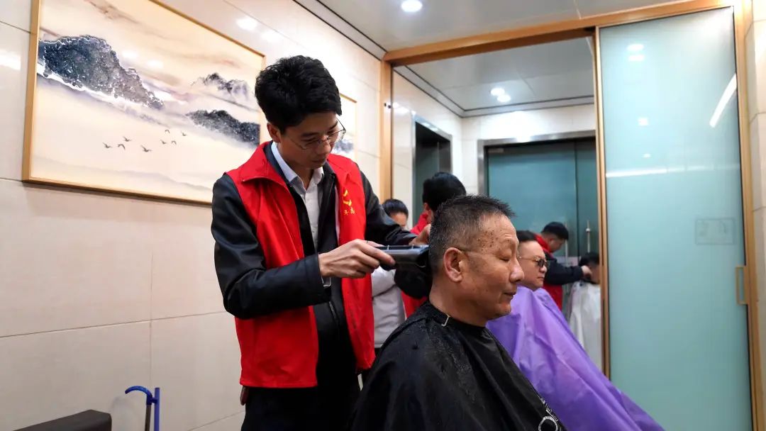 在梅苑社区,志愿者们围绕辖区居民需求,免费开展理发、义诊、缝纫、清洗眼镜、家电维修等10余项志愿服务。活动现场,志愿者“挥舞着”手中的剪刀、电推剪,为前来理发的居民剪出一个清爽利落的发型,理发工具虽简单,但理发师娴熟的剪发手艺还是吸引了不少居民排队等候。