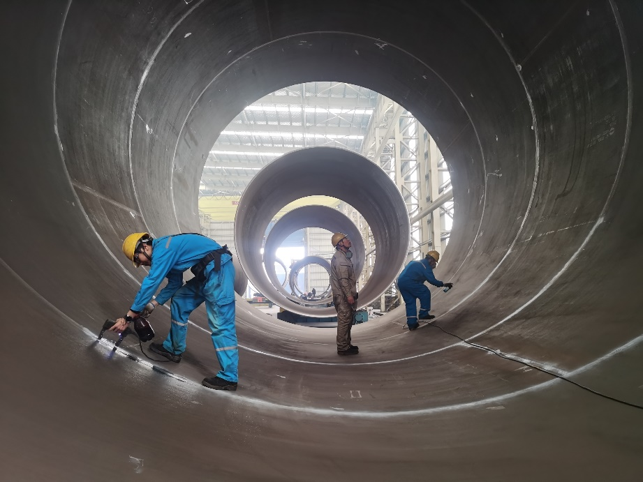 华电重工提前研判抢装潮带来的制造资源、运输资源、海上施工资源异常紧张现实情况,在项目执行初期,提前锁定适合本项目的船机设备,时刻跟踪,确保船机设备组及时进场;将32根单桩基础分配至6家制造单位同时开展制造工作,安排专人驻厂协调生产,开足马力确保现场施工进度。