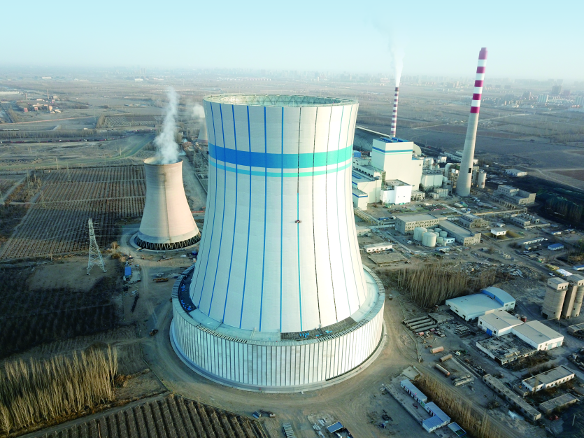 新疆哈密项目钢冷塔是国内首座超大型双曲线型钢结构空冷塔。设计研发团队首次提出适用于钢冷塔的双层双向斜交钢管桁架结构体系,钢冷塔的结构体系、连接节点、围护系统等多项关键技术获得国家专利10余项,发明专利2项。该项目钢冷塔结构形式复杂、作业危险性高、施工难度大,项目团队通过施工技术攻关,形成多项钢冷塔施工关键技术。该项目获评2023年“中国钢结构金奖”工程。